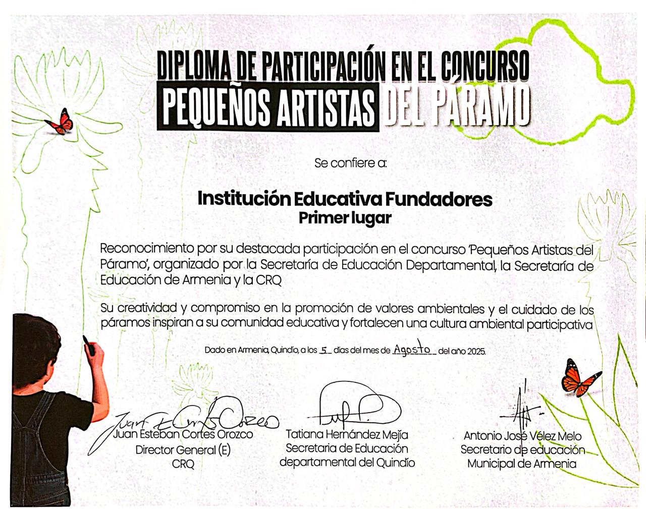 Desde los directivos y toda la comunidad eduvativa, compartimos la alegría para la Institución Educativa Los Fundadores con la docente Sonia Cristina Ocampo y sus niñ@s de transición. Primer lugar Concurso de la CRQ » El páramo y su importancia para la vida»